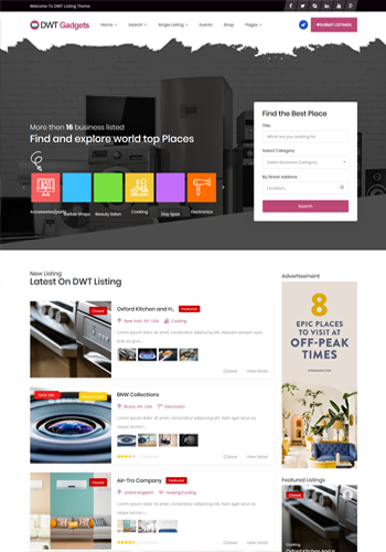 DWT Listing is a Premium WordPress theme that contains all the features you need to build a fully functioning listing websites. Our directory theme comes with versatile & powerful features with RTL Support as well. If you want a feature rich themes that incorporate everything, DWT Listing is the best choice.